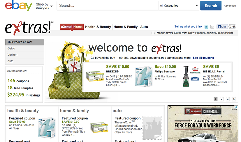 eBay eXtras landing page